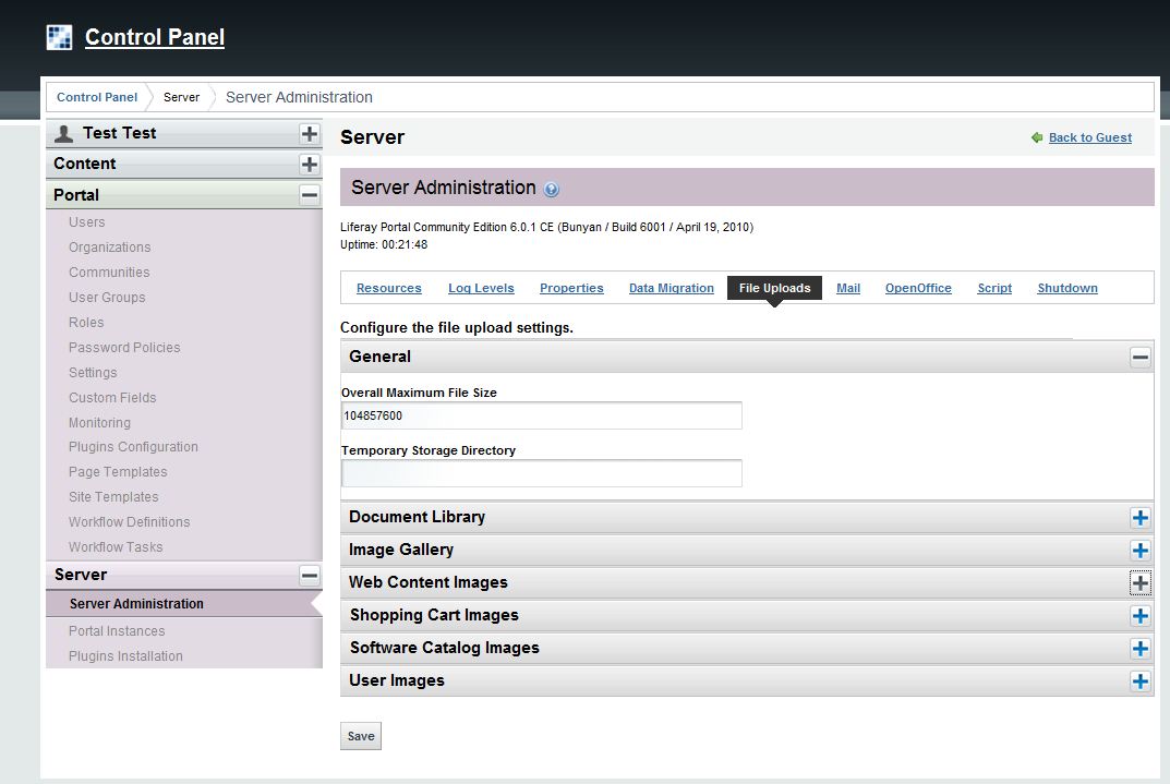 File upload limits for different kind of portlets can now be configured in control panel itself.