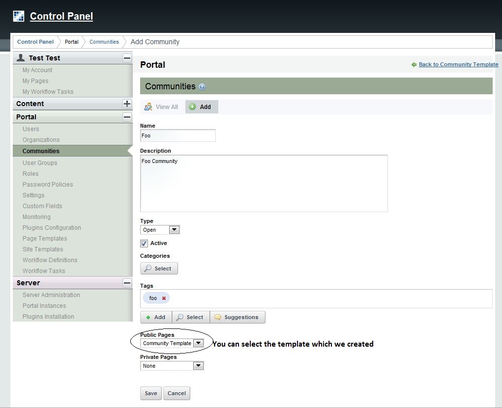 Go to Control Panel -> Communities . Click on ADD button to create a new community.